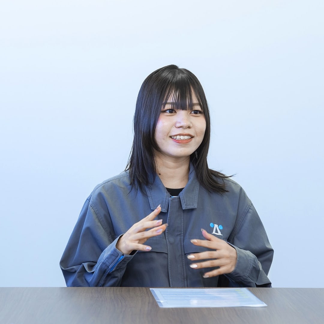 2021年入社事業所のDX推進を担当。AIやIoT等のデジタル技術を活用した業務プロセスの変革や、DXマインドの醸成に向けた戦略づくりを進めている。前部署では品質管理を担当し、現場とデジタルの橋渡し役として活躍中。