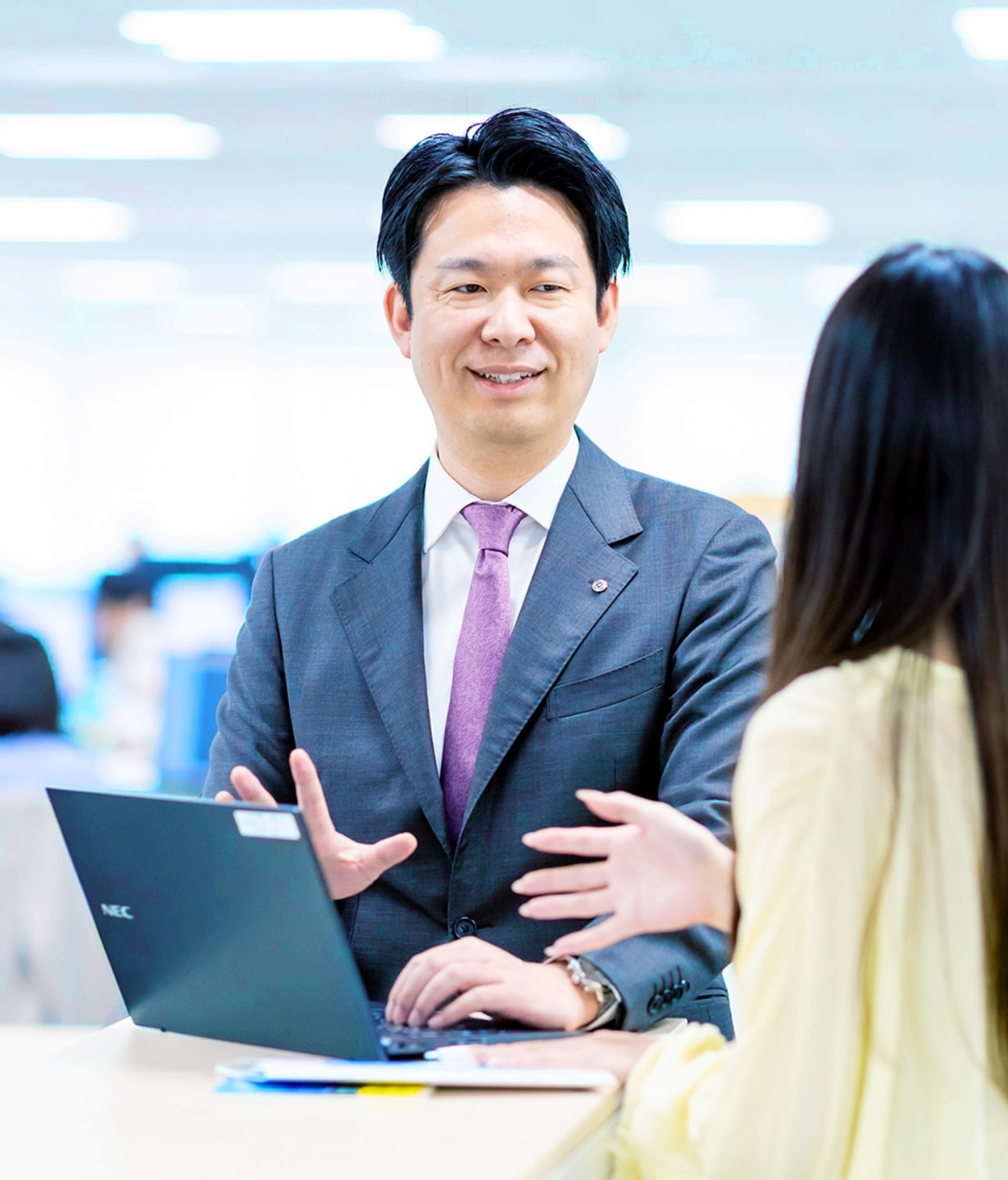 人事制度構築・労務対策・採用・人事異動・人事考課・給与及び福利厚生に関する業務を担当。また社員育成基本方針を立案し、方針に基づく教育・研修の実施、各部・部署の教育計画の監督・指導に関する業務を行います。